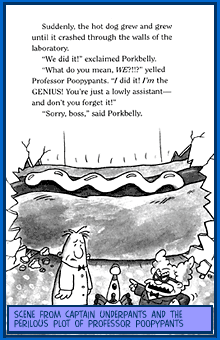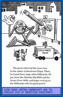 And when Professor Pippy P. Poopypants becomes their new science teacher . . . well, George and Harold almost cause the entire planet to be taken over by a maniacal, mad-scientist guy in a giant robot suit! Who will stop the perilous plot of Poopypants?!!? This looks like a job for Captain Underpants!